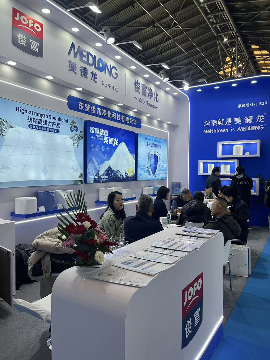 At the exhibition, Jofo Filtration present its versatile meltblown and spunbond technology solutions. Meltblown tech serves air filtration, face masks & respirators and liquid filtration, while spunbond materials apply to furniture packaging, agriculture, and medical & industrial protection, and so on. Highlighting nonwovens’ resource efficiency and environmental benefits, JOFO Filtration attracted numerous inquiries and exchanges. It shared expertise, gained insights and explored new business opportunities with prospects, partners and peers, advancing global sustainable development.